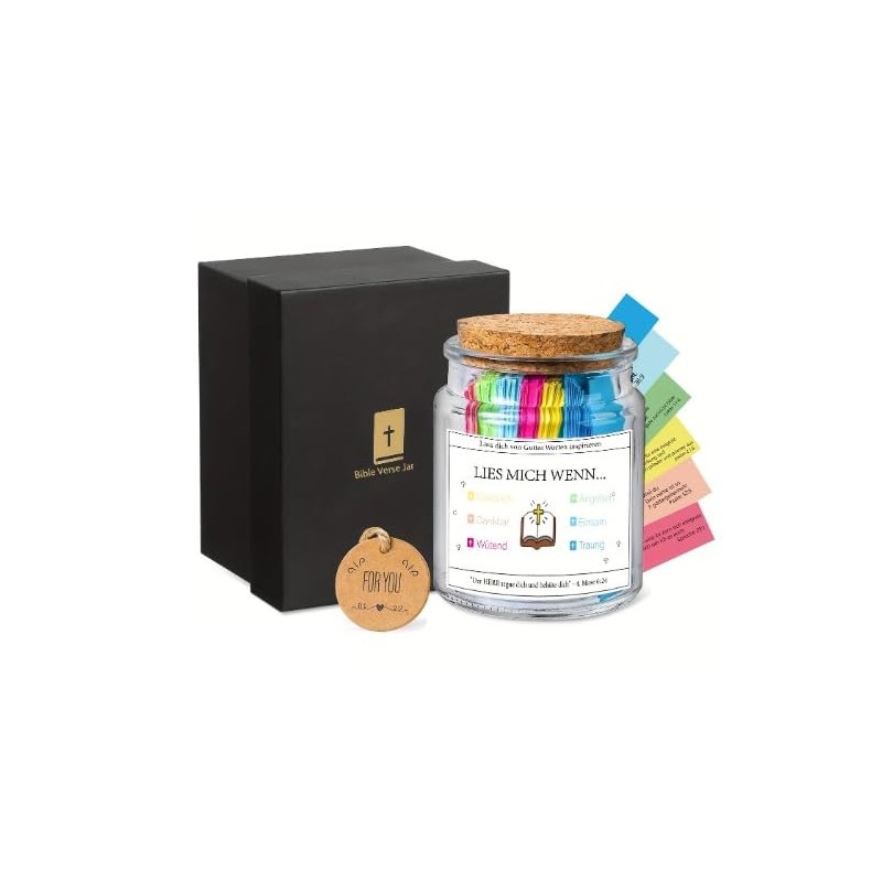 - 📖 90 Inspirierende Bibelverse: Unser Scripture Jar enthält 90 sorgfältig ausgewählte Bibelverse, die Ihnen täglich spirituelle Unterstützung und Kraft schenken. Perfekt für Momente der Freude, Dankbarkeit oder Herausforderung – finden Sie Trost und Orientierung in jedem Vers.