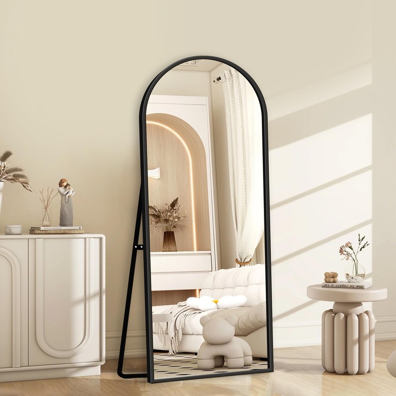- Elegant Arched Design: This full-length mirror showcases a refined arched top, bringing a touch of elegance to any room. The minimalist aluminum alloy frame ensures durability while enhancing the mirror's sleek, modern look