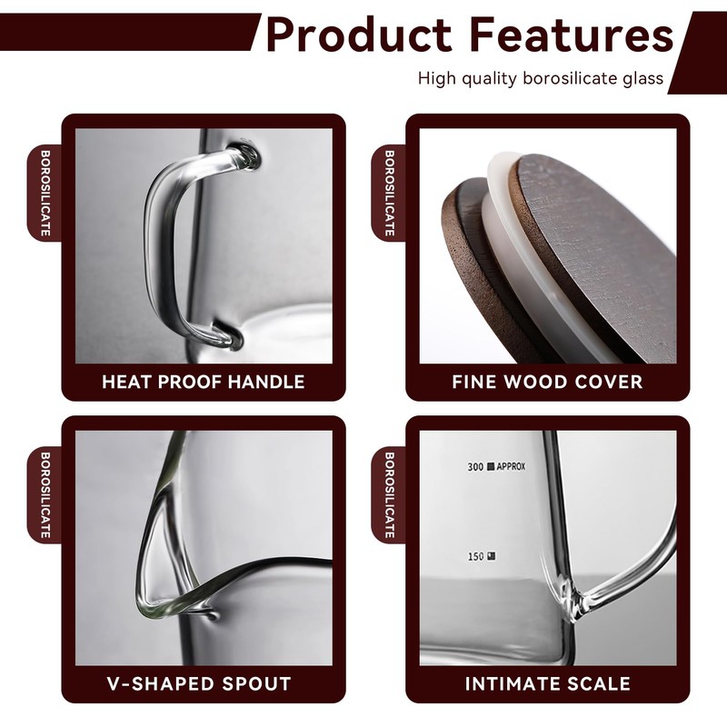 - SMALL AND CUTE: The glass coffee maker has the right size, easy to hold, double-layer design, better heat insulation, the coffee pitcher can keep your drink warm for a certain period of time, the cup mouth is round, and the drink can flow smoothly.