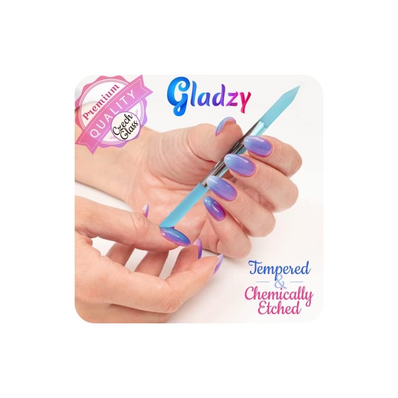 Glass Cuticle Pusher by GLADZY - Manicure Stick, Genuine Czech Quality, Professional Precision Filing Cuticle Remover, Abrasive Surface Never Wears Out