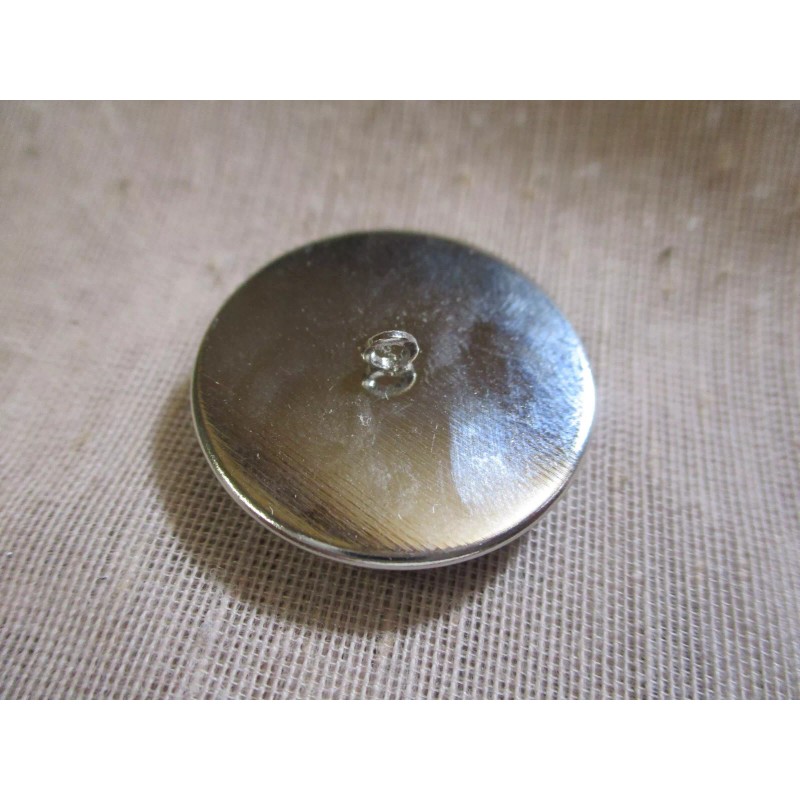 GLASS DOME PICTURE BUTTON - LOOKS LIKE COPPER AND TURQUOISE AND CORAL STONES. LOOKS LIKE REAL JEWELRY. THE BACK IS SHINY SILVER METAL WITH BUILT-IN SHANK. SIZE 1-1/8 inch (30mm)