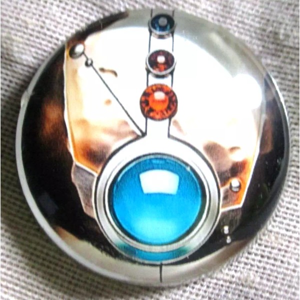 GLASS DOME PICTURE BUTTON -- LOOKS LIKE METALS TURQUOISE & CORAL STONES - 30mm