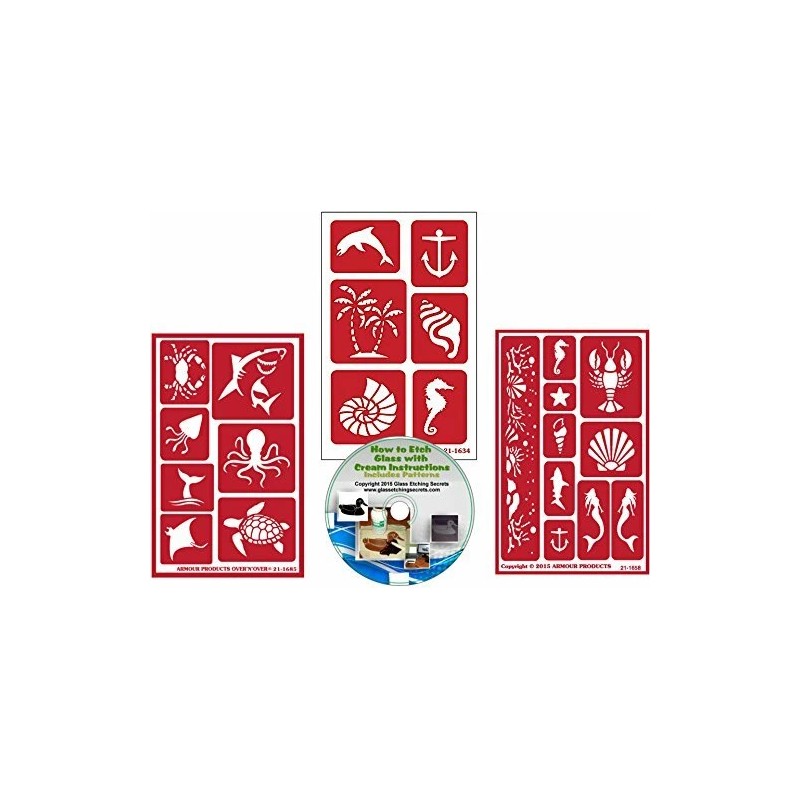 Glass Etching Secrets Sea & Ocean Life Animal Stencils: 3 Pack Reusable Nautical Stencils for Paint Or