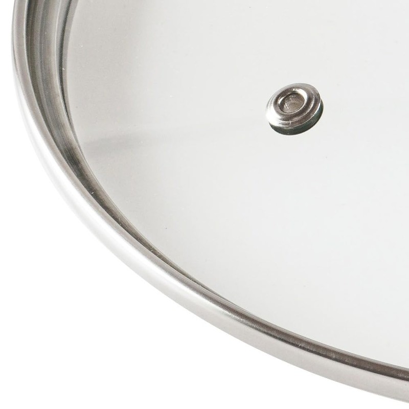 - Universal lid with a diameter of 12 cm - a glass lid with a stainless steel rim and a handle. The lid has a diameter of 12 cm and a height with handle of 5.5 cm. It can be used for pots, pans and casseroles of this size.