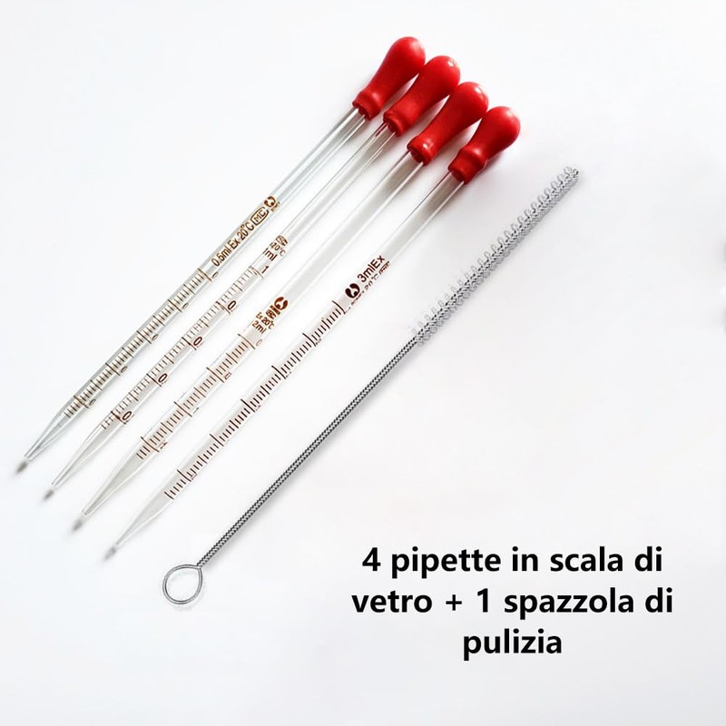 - Package content: you will receive 4 pieces transfer pipette in different sizes and 1 cleaning brush. The dimensions of the pipette glass are: 0.5 ml, 1 ml, 2 ml and 3 ml, each. Enough to meet your different needs.