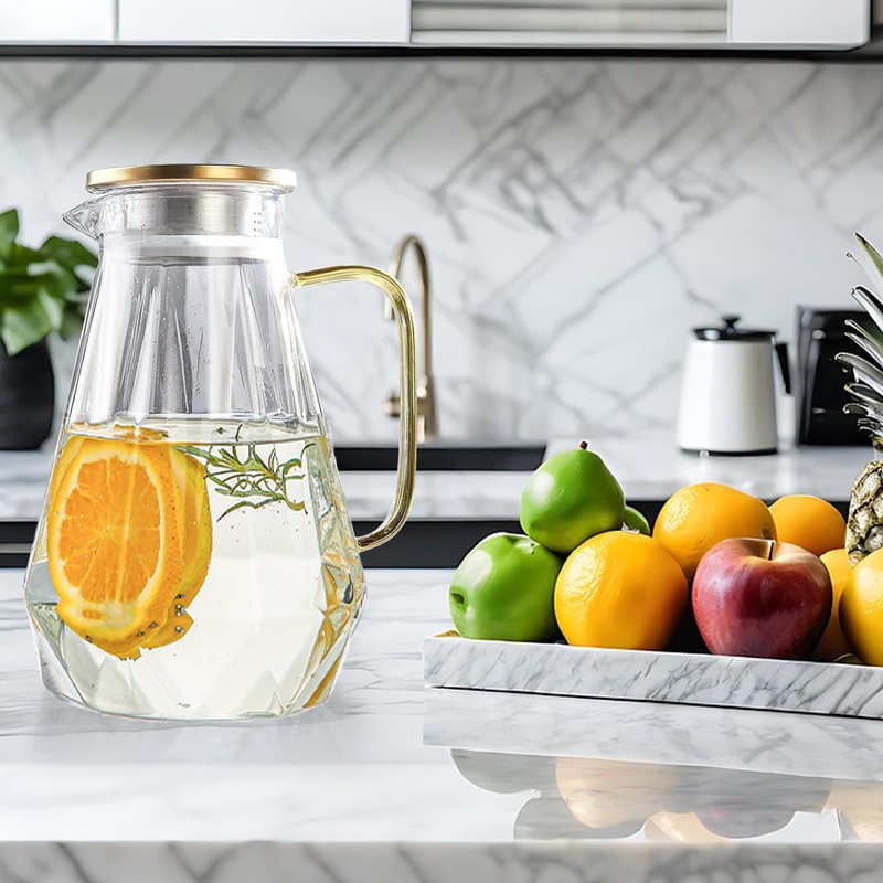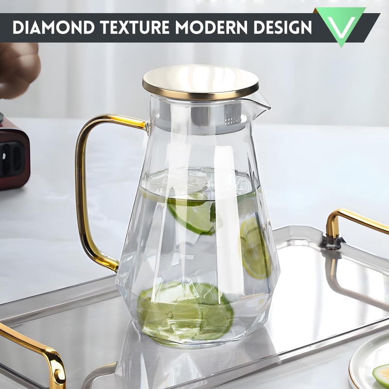• Exquisite design: This glass jug adopts a unique diamond design. The combination of the gold lid and gold handle perfectly combines modern elements with a luxurious atmosphere, adding a touch of luxury to your home environment and bringing a pleasant visual enjoyment.