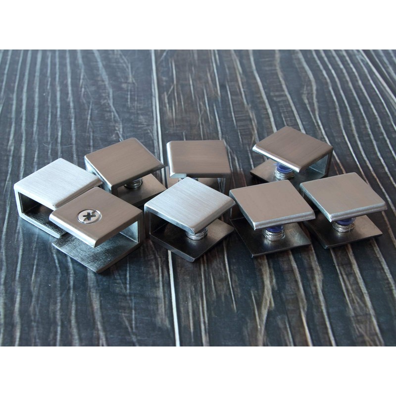 Glass Shelf Brackets Shelf Clips Metal Clamps Brushed Nickel Square Shape Wall Mounted Adjustable 8-12mm for Acrylic Wood (Set of 8)