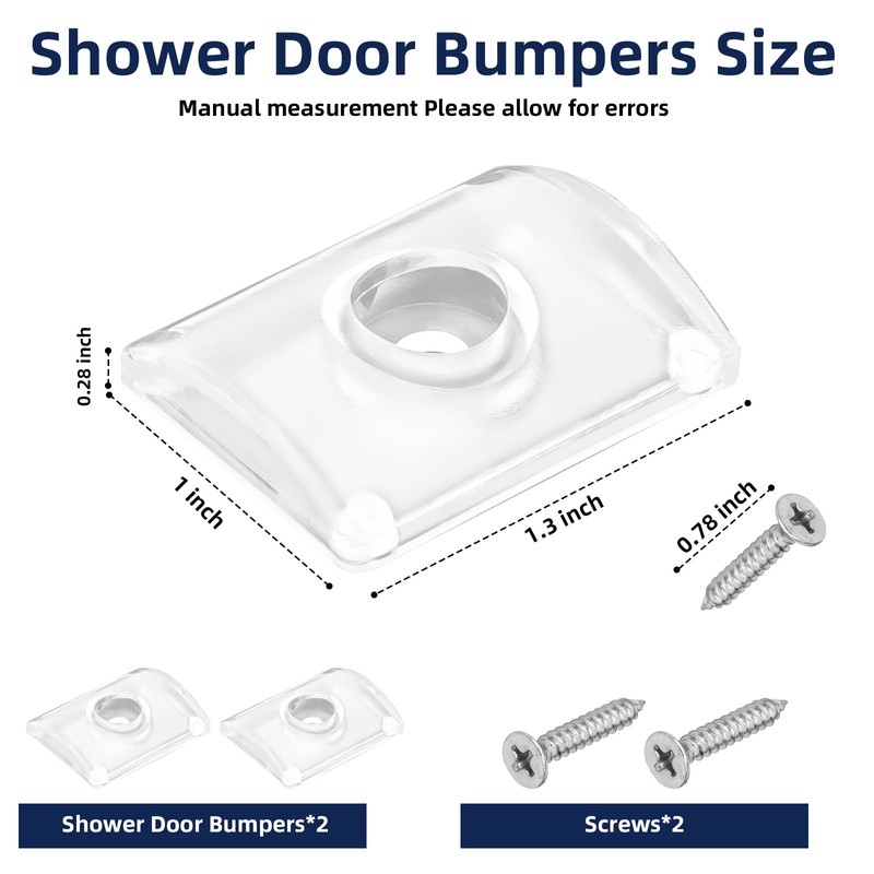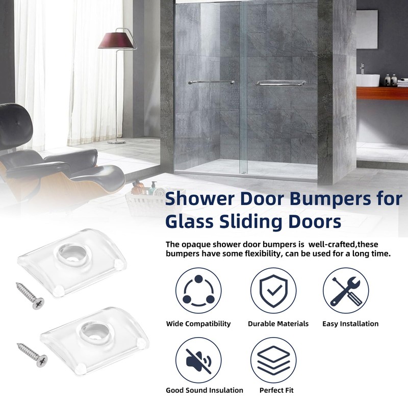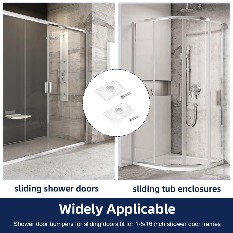 - 【Glass Shower Door Bumper Stops 】Door bumpers for walls fit for sliding shower doors, glass shower doors, shower glass door, bathroom glass door and tub shower door 1 inch / 1.3 inch shower door frame. Clear shower doors bumper with screws. Reduces sliding, scratching, and noise reduction on glass doors, bathroom doors, sliding glass doors, and furniture fixtures.