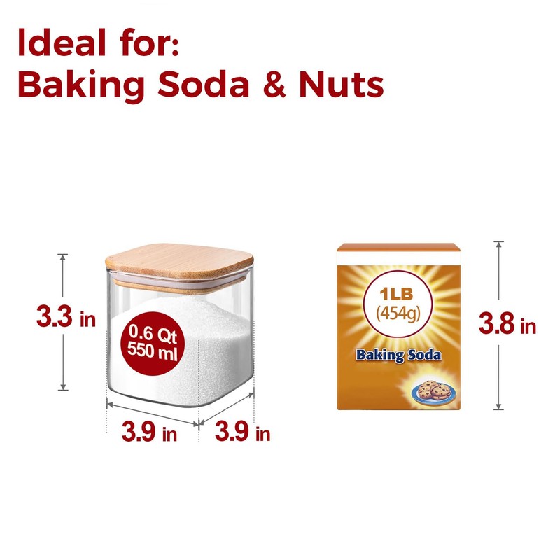 - 【Perfect Size for Baking Essentials】This 2-piece set features 0.6qt square jars ideal for storing baking ingredients such as brown sugar, white sugar, powdered sugar, cube sugar, spices, candies, snacks, and dried beans.