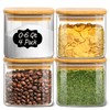 Glass Storage Jars with Bamboo Lid,Airtight Kitchen Canisters for Baking, Food Jar Container for Spices Cookie Tea Coffee Beans Snacks (4 pack 0.6qt)