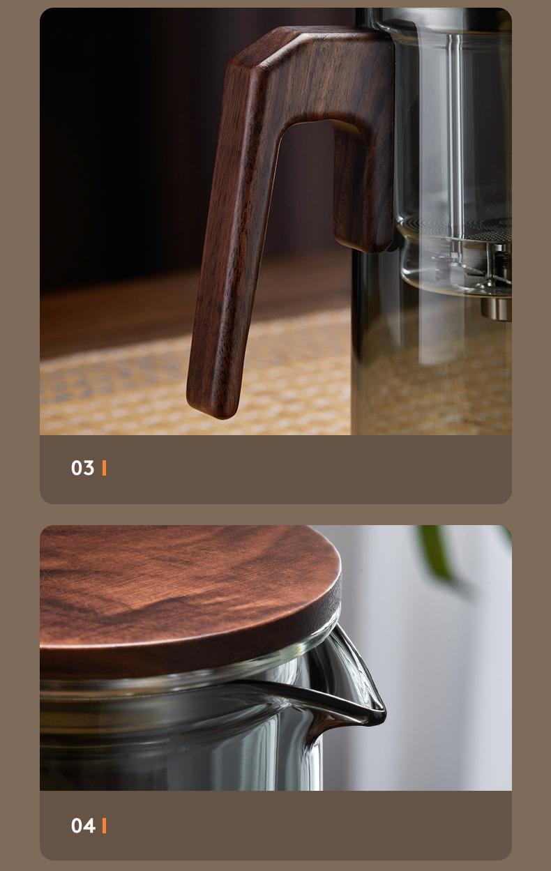 - Natural wood handle: Designed for comfort and style, the teapot's handle is crafted from high-quality wood, providing a comfortable grip while adding a touch of warmth and sophistication to your tea service.