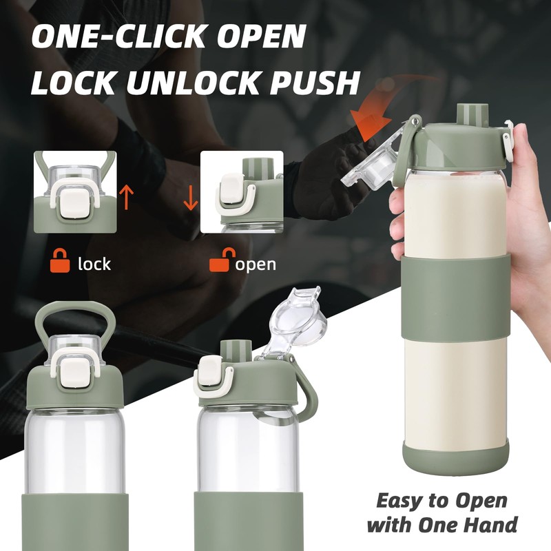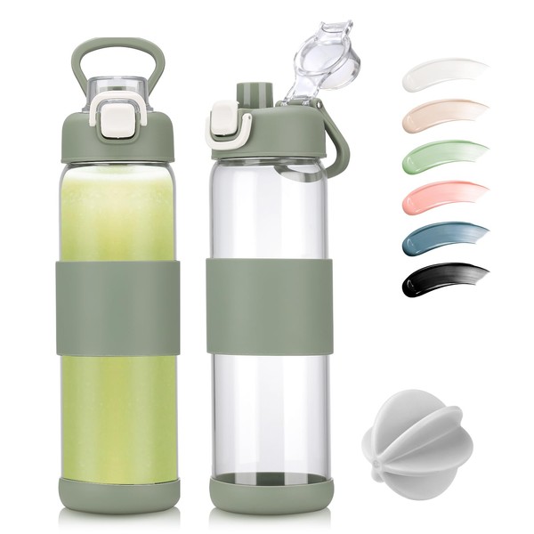 - LEAK-PROOF:The 24 oz glass shaker bottle featured with one touch flip lid makes it easy to pop and drink directly from the glass. The lid engineered to ensure a leak-proof seal, providing you with peace of mind wherever you go