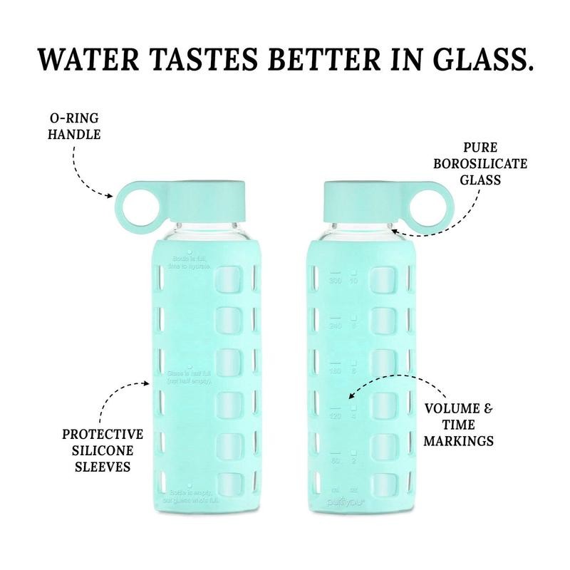 Meet Your New Favorite Water Bottle - Made For Nature, Made For You!Our versatile lineup of glass water bottles is perfect for every scenario - whether it be hiking, camping, the beach, the gym, at home, or in your office, these bottles are your perfect daily companion. This simple-looking bottle improved over the years based on customers' feedback and packed with helpful features that will keep you easily hydrated throughout the day.PROJECT: GIVE BACKEvery purchase from us doesn't only help save the environment, but also helps in our sustainability efforts worldwide! A portion of our sales goes towards promoting sustainable living across the planet.NOTES:Our Glow in the Dark Variant is the lightest of our shade so the time and volume markings are slightly harder to read compared to the other colors we have. Actual color may vary depending on your screen settings and resolutions.