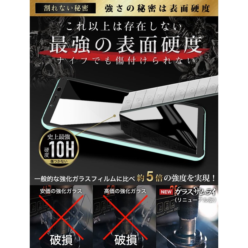 - (Advanced 3rd Generation Technology) Adopts chemical tempered glass that combines flexibility and strength. In addition to high strength with a hardness of 10H, it is also flexible to withstand long-term wear. This glass film is "more unbreakable", "more floating", and "does not crack corners