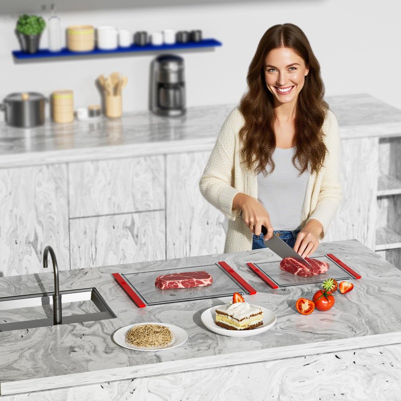 - Crafted from premium tempered glass, this cutting board ensures safe food prep for any kitchen, providing unmatched hygiene and durability.