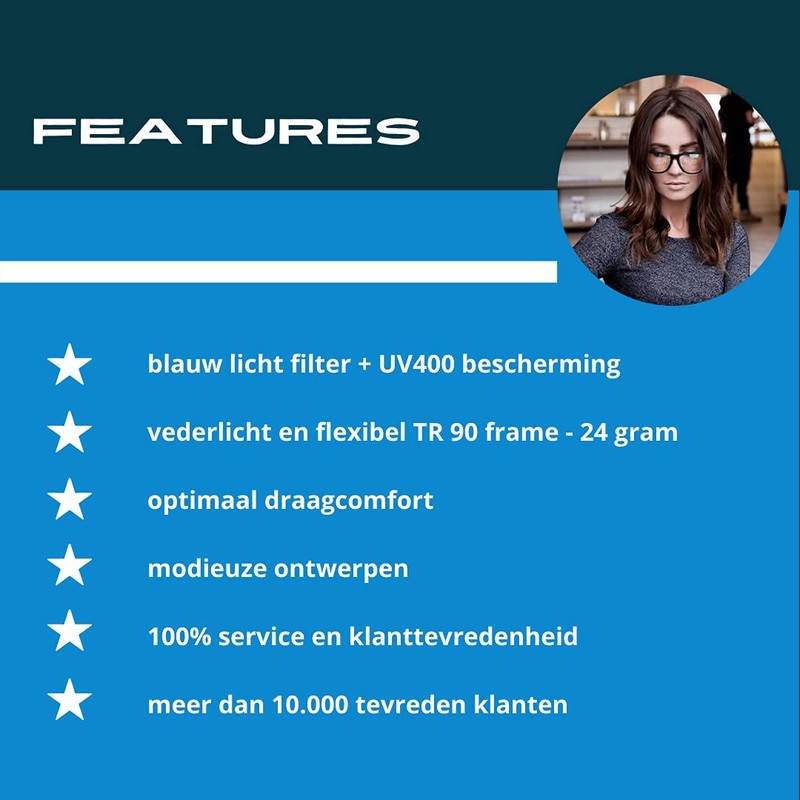 - Blue light filter, UV 400 protection, optimal wearing comfort, round frame