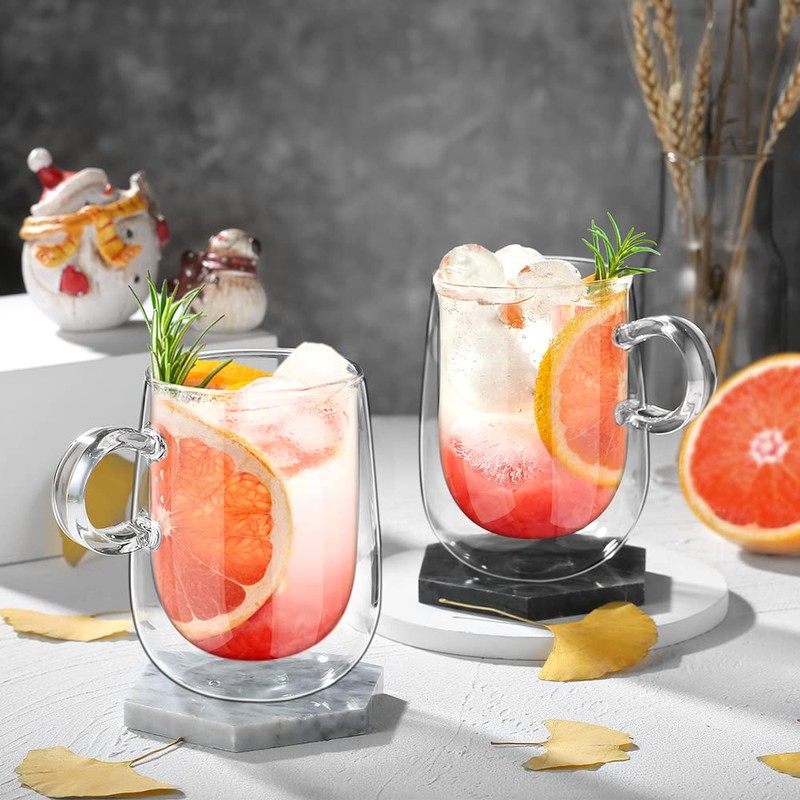 - Double Wall: The double wall design keeps the cup safe to touch with hot drinks and free of condensation with cold ones. And also keeps your drinks hot or cold for longer than one layer glasses under the same conditions.