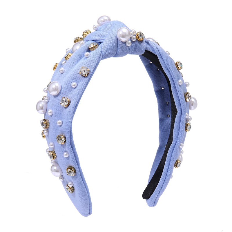 GLBCC Diadema Anudada con Perlas para Mujer, Diadema Adornada con Joyas de Cristal Y Diamantes de Imitación de Perlas Blancas, Diadema Ancha con Nudo Superior A La Moda para Mujer, Diadema Ancha Bohem