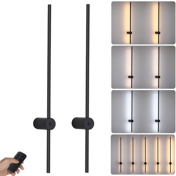 GLEAMACE Battery Operated Wall Sconces Set of 2, Rechargeable 6000mAh Wireless Lights with Remote, 360° Rotation Dimmable 3000K-6000K, No Wiring Indoor Lamps for Bedroom Hallway Stairs 40 Inch Black