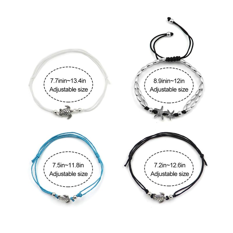 - Bohemian style anklet features with turtles, starfish as pictures show, perfect for summer and beach. And the size is adjustable that you can match your foot easily.
