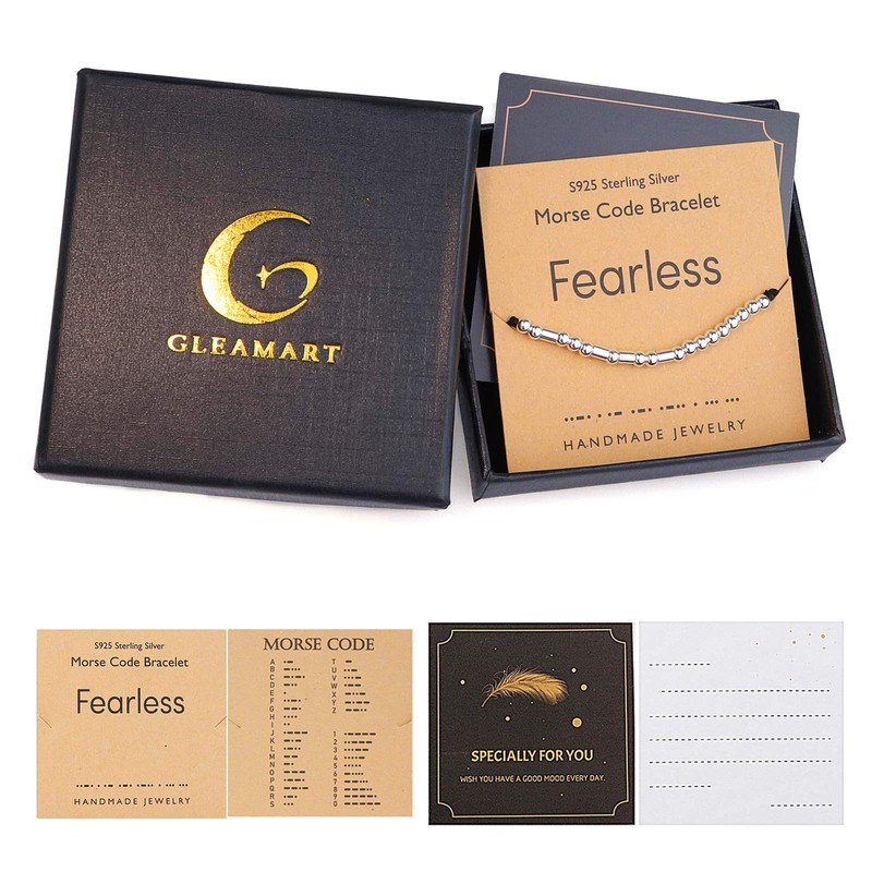 Gleamart Morse Code Bracelet 925 Sterling Silver Handmade Secret Message Beads Silk Cord Bangle for Fearless