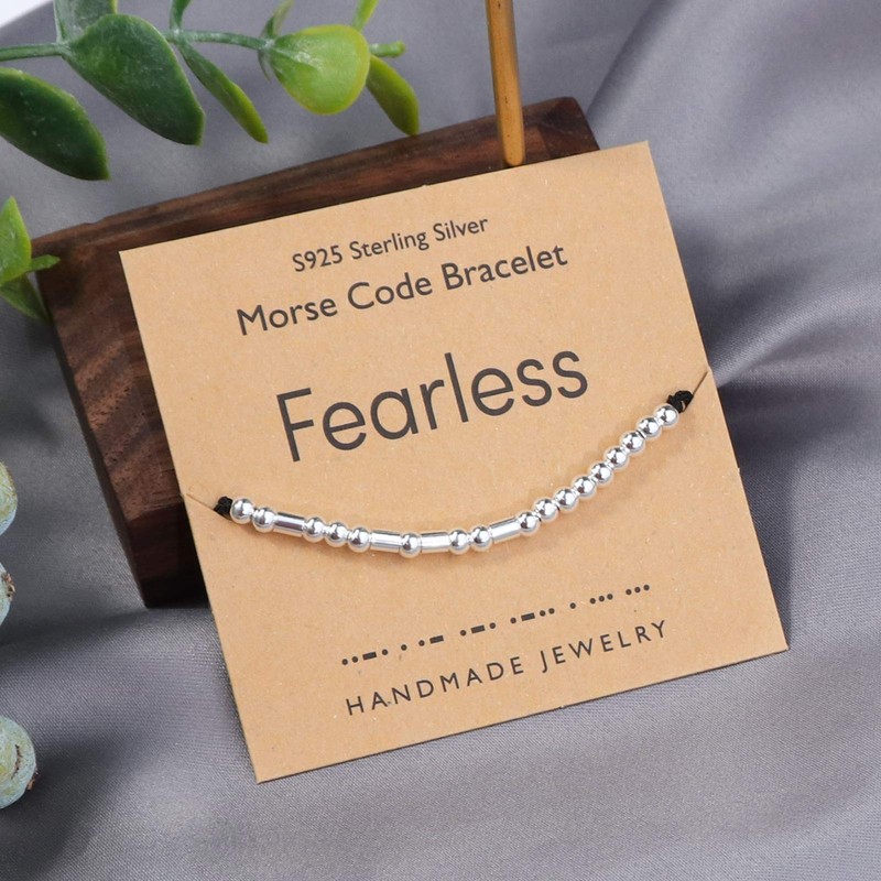 - Meaningful Design: Fearless - funny morse code mantra. The bracelet makes use of morse code to transit secret message. Morse code bracelet makes the message meaningful. Each dot and dash is represented by a unique sequence.