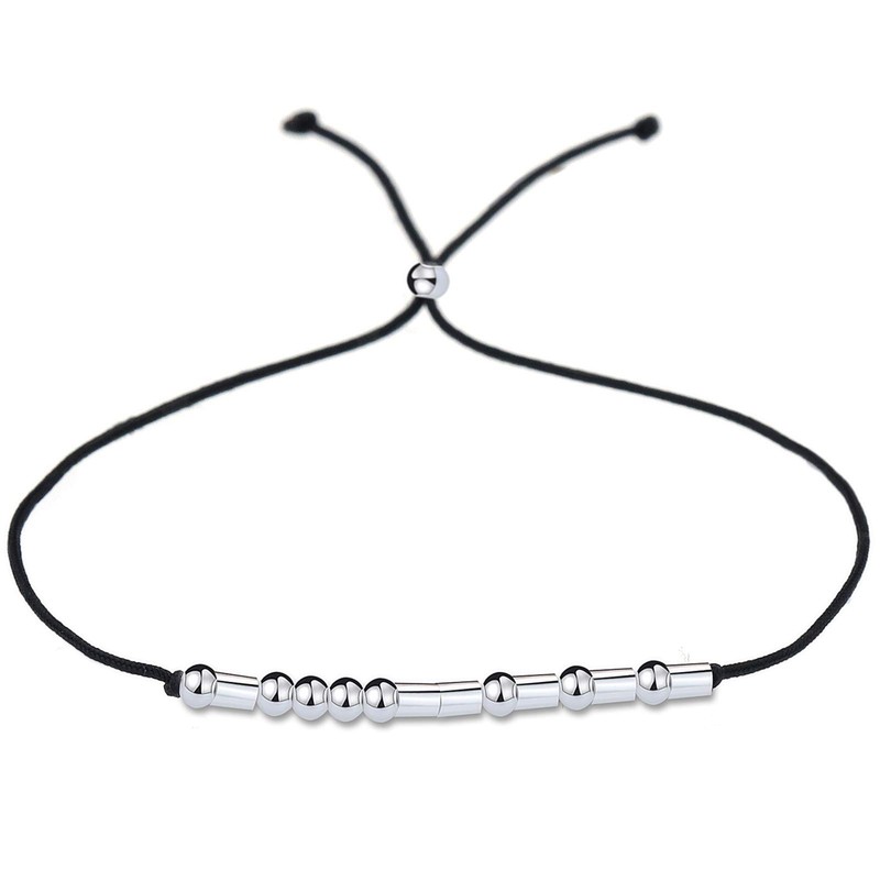 Gleamart Morse Code Bracelet 925 Sterling Silver Handmade Secret Message Beads Silk Cord Bangle for Luck