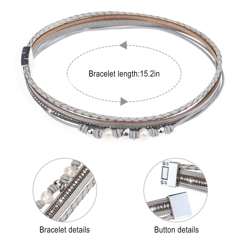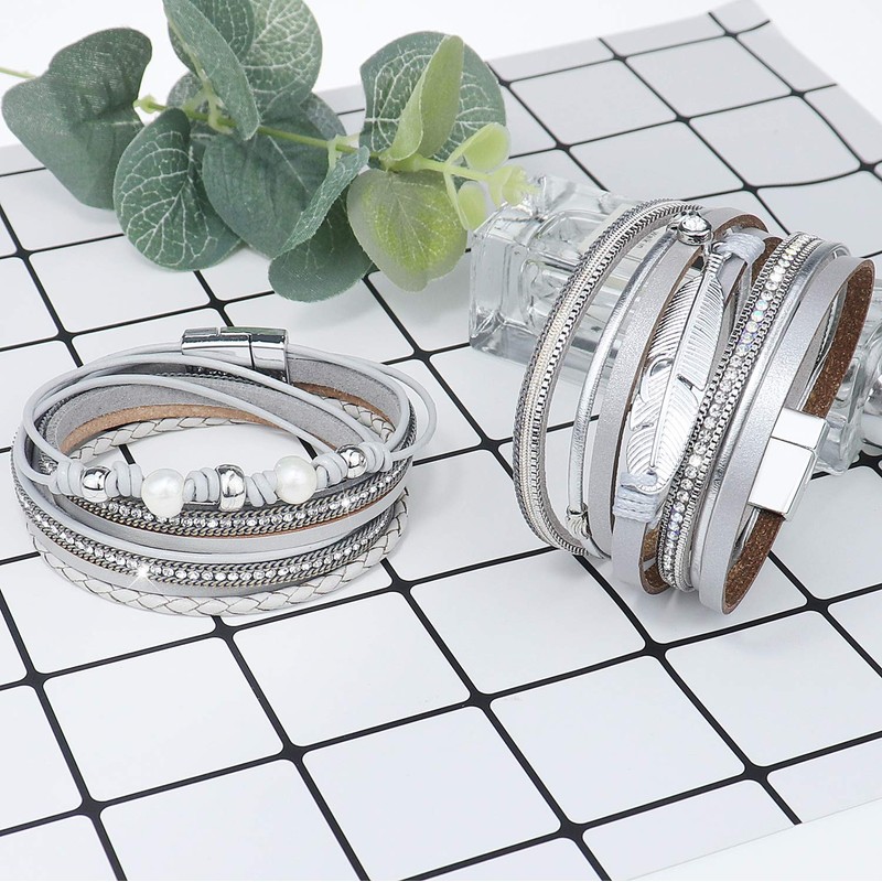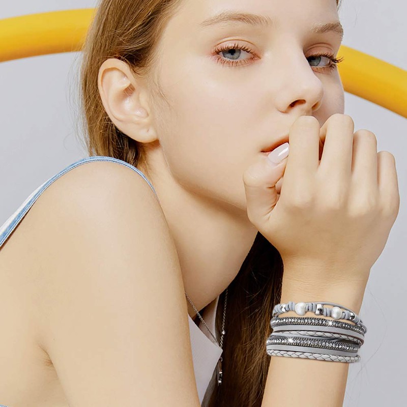 - Material: Excellent multilayer silver bangles are made up of leather material.