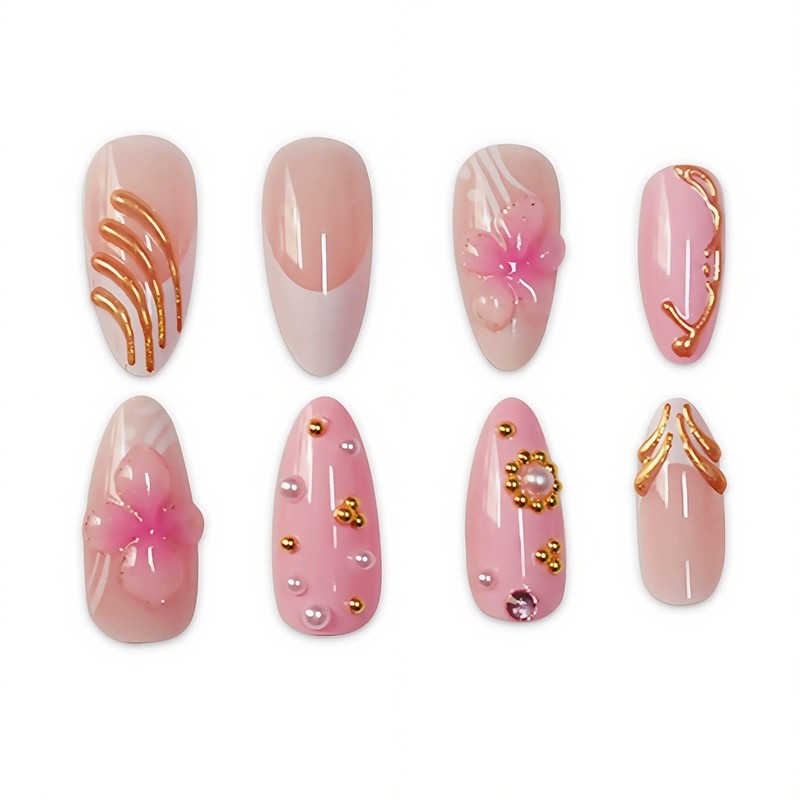 Elegant Almond Shaped Press-On NailsTransform your nails into a work of art with our stunning almond-shaped press-on nails! Designed for women and girls who crave elegance and sophistication, these nails are perfect for any occasion, from daily use to special events.Key Features: Almond Shape: The classic almond shape elongates the fingers, giving them a graceful and refined look. It's ideal for those who want to enhance their natural nail shape. Easy to Apply: Our press-on nails are designed for hassle-free application. Simply press them onto your natural nails, and you're ready to go! Durable and Long-Lasting: Made from high-quality materials, these nails are strong and durable, ensuring they stay in place for 1-2 weeks without chipping or peeling. Versatile Designs: Choose from a variety of designs, including solid colors, patterns, and even 3D embellishments. Whether you prefer a subtle look or something more bold and glamorous, we've got you covered. 24 Pieces: Each set includes 24 nails, ensuring a perfect fit for all your fingers. Mix and match to create your own unique style.Perfect for: Daily Use: Add a touch of elegance to your everyday look. Special Occasions: Stand out at parties, weddings, or any event where you want to look your best. Gifts: A thoughtful gift for friends, family, or anyone who loves to pamper themselves.How to Apply:1. Clean and prep your natural nails: Remove any polish and ensure your nails are clean and dry.2. Select the right size: Choose the nails that best match the size of your natural nails.3. Apply adhesive: Use a small amount of nail glue or adhesive to secure the press-on nails.4. Press on: Firmly press the nails onto your natural nails and hold for a few seconds to ensure they stick.5. Style and enjoy: Your new nails are ready to show off!