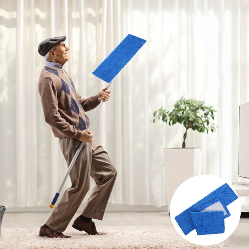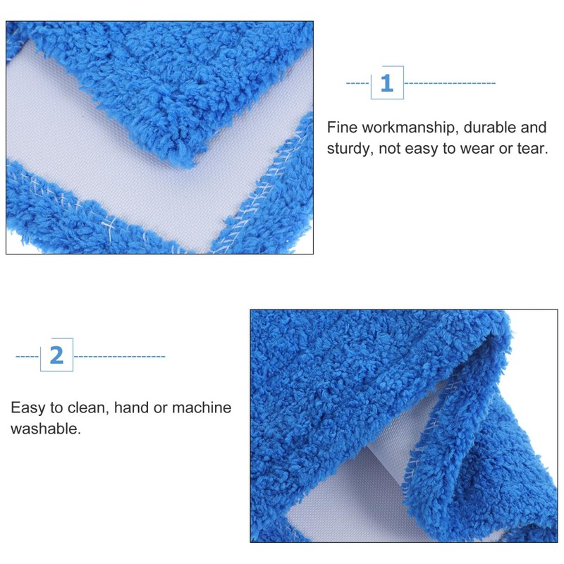 GLEAVI Mop Replacement Pads 2 Pcs Coral Fleece Mop Cloth Thickener Flat Mop Cross Head Blue