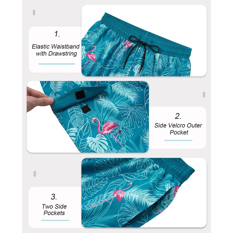 - 【4 Pockets Men's Boardshorts】 The mens bathing suits feature two side pockets for secure storage and a side velcro pocket for quick access, men swimming trunks ensures your essentials are safely tucked away while remaining easily reachable.Mens printed swimsuits with 1 hidden lined pocket, convenient phone essentials, give fully sense of security and keep hands free.