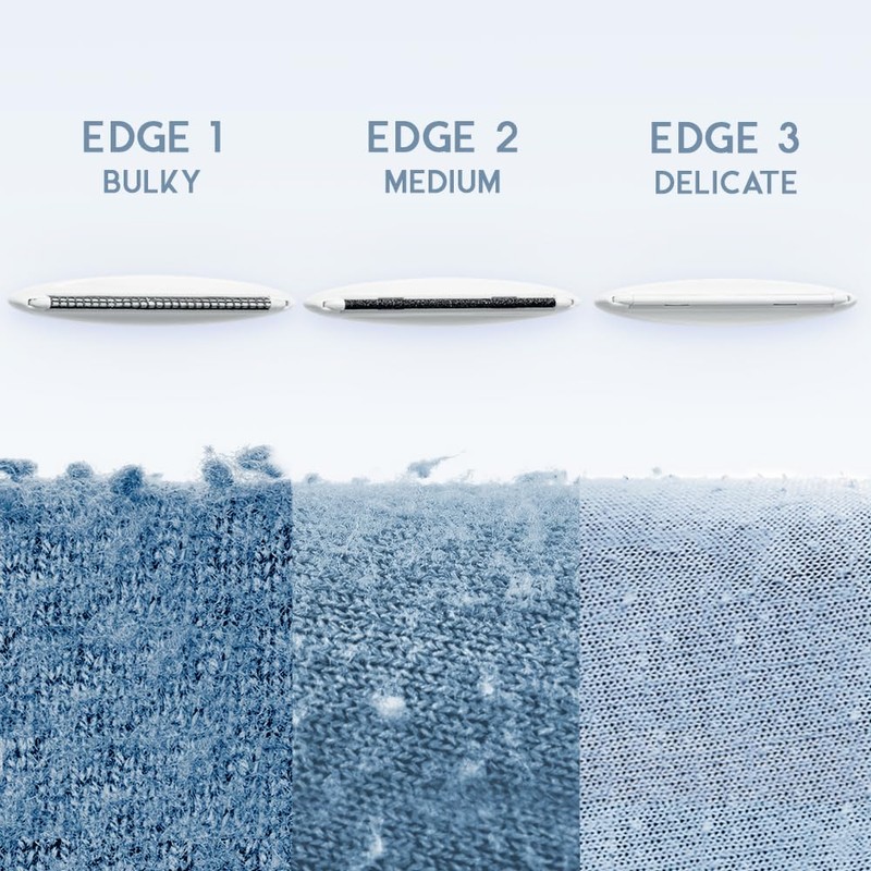 - ERGONOMIC PATENTED DESIGN: The ergonomic handle has a soft moulded grip & the quick release button allows you to easily switch between lint shaver edges. Comfortable to use for bigger depilling jobs such as cushions, sofas, linens, and blankets. Kit includes: Ergonomic handle with integrated lint brush, 3 fabric safe edges, and drawstring travel pouch.