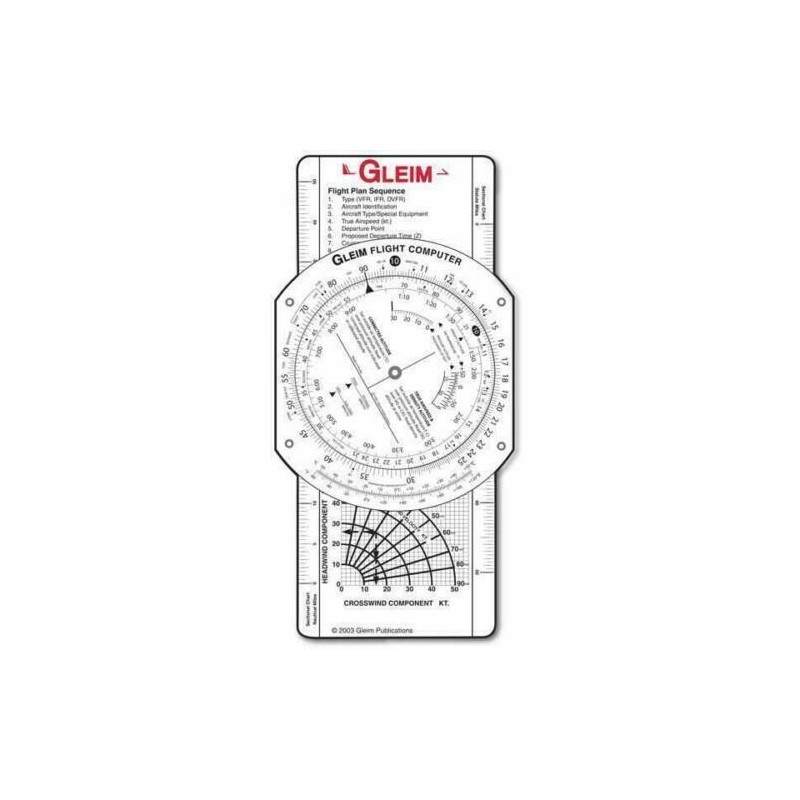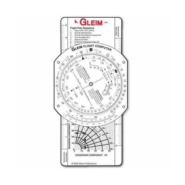 A standard E6B flight computer made of durable fiberboard. Includes speed, time, and distance computations, along with temperature and other conversions that all pilots need to know in cross-country flight planning. This computer also includes a crosswind component graph, a Flight Plan Sequence Checklist, and Special Equipment Suffixes for daily flying.