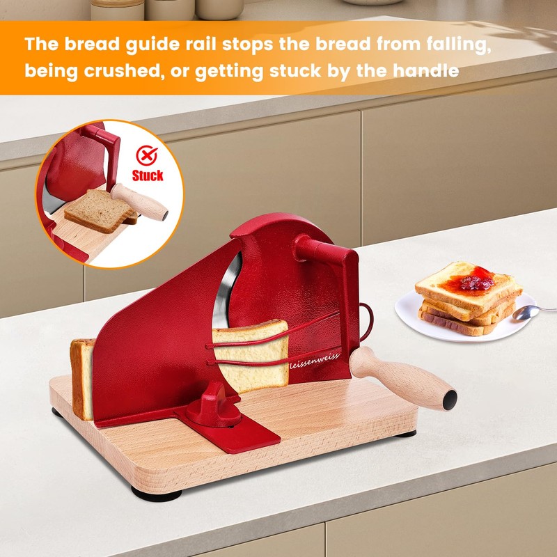 Gleissenweiss Manual Bread Slicer for Kitchen and Bakery, Stainless Steel Blade, Adjustable Thickness, Ergonomic Handle, and Suction Cup Base (Red)