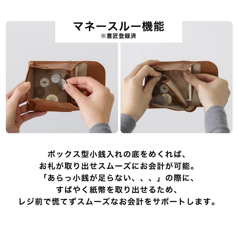 - Specifications: Interior: Card pockets x 6, Open pockets x 2, Bill compartment x 1, Card pockets inside bill x 2, Exterior: Open pocket x 1, Box-shaped coin purse x 1 (with money through function that allows access to the billfold), D-ring x 1