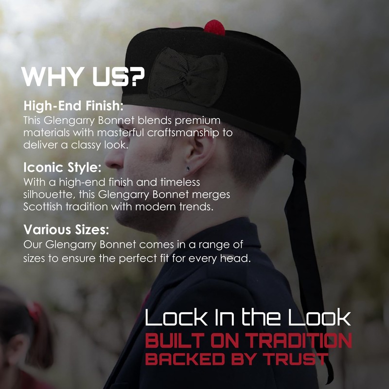 - 【 GLENGARRY HAT】 Kilt Loom Classic Glengarry hats made up of soft wool with Polyester Cotton Ribbon. Our traditional Scottish hat is long-lasting and breathable, making it pleasant to wear anywhere.