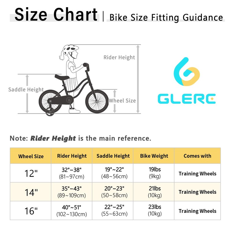 - 【PLEASE CHECK THE SIZE】 Glerc is committed to offering good Post-Sale service. CHOOSING the right size for your little is the key to whether she can explore the colorful world smoothly by riding. What we recommend you can find in the picture display cabinet or the chart at the bottom. Don't forget to choose from multiple colors to get her perfect one. If you have any problem, always contact us for help.