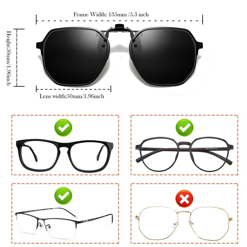 - 🔩👓 Universal Clip-On System – Effortlessly attaches to most prescription glasses via spring-loaded hinges for instant sun protection.