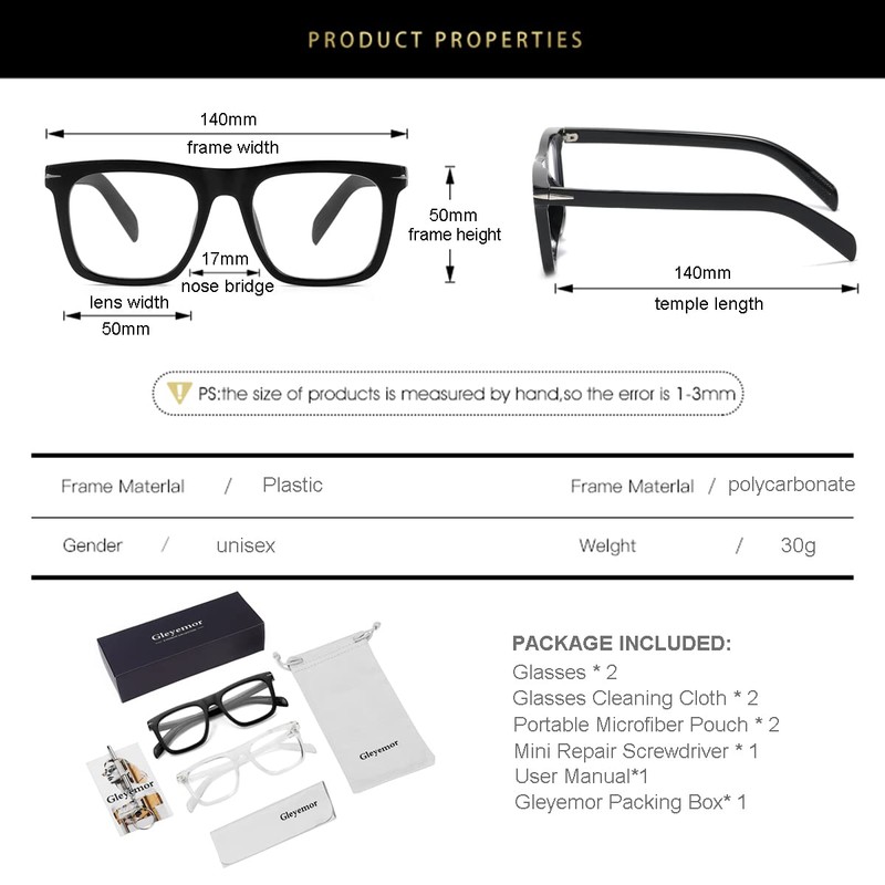 - ★ PRODUCT DIMENSION - Lens Width: 50mm (1.97 IN), Frame Height: 50mm (1.97 IN), Nose Bridge: 17mm (0.7 IN), Frame Width: 140mm (5.5 IN), Temple Length: 140mm (5.5 IN). Net Weight: 30g.