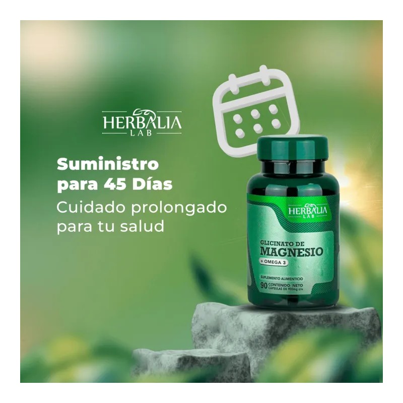 Glicinato de Magnesio 400mg Magnesio Glicinato + Omega 3 Fórmula Avanzada Alta Absorción 90 Cápsulas Herbalia Lab