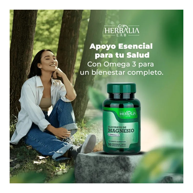 - Herbalia Lab te presenta una fórmula superior que combina Glicinato de Magnesio y Omega 3, diseñada para proporcionar un soporte natural en el día a día. El Glicinato de Magnesio es una forma altamente absorbible de magnesio, lo que lo convierte en una opción ideal para quienes buscan un suplemento suave con el estómago y fácil de incorporar a su rutina. Esta fórmula contribuye a complementar una alimentación balanceada con uno de los minerales más esenciales en la nutrición moderna. Además, el Omega 3 añadido aporta ácidos grasos esenciales como el EPA y el DHA, conocidos por ser componentes clave en una dieta saludable. Estos ácidos grasos son reconocidos por su capacidad para complementar una nutrición adecuada y mantener el bienestar general. En cada cápsula, Herbalia Lab combina estos dos poderosos ingredientes para ofrecerte una opción conveniente, natural y de calidad. Este suplemento está cuidadosamente formulado sin aditivos innecesarios, garantizando que obtienes únicamente ingredientes seleccionados por su pureza. Con su cómodo formato de cápsulas blandas, es perfecto para el consumo diario y se adapta fácilmente a cualquier estilo de vida, proporcionando un complemento equilibrado para mantener el bienestar natural.