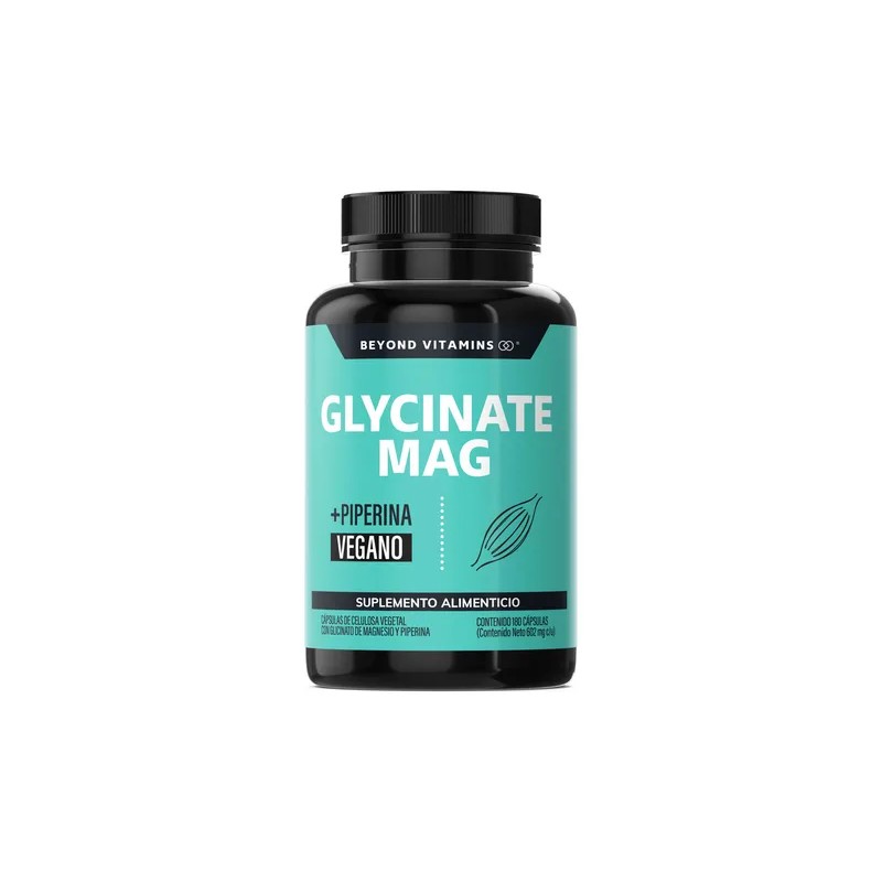 - +180 Cápsulas Glycinate Mag Beyond Vitamins contiene una combinación completa de Glicinato de Magnesio, Magnesio y Pimienta Negra estandarizada al 95%. Características del Glycinate Mag Beyond Vitamins: Libre de azúcares, lácteos y soya Libre de edulcorantes, colorantes, saborizantes, ingredientes artificiales ni conservantes No contiene hormonas No contiene antibióticos MODO DE EMPLEO Tomar cuatro (4) cápsulas al día, preferiblemente junto con alimentos (idealmente con grasas saludables, tales como aguacate, nueces, semillas o aceites de oliva o vegetales) y agua. No exceder la porción recomendada. PRECAUCIONES: No se recomienda su uso en menores de 18 años, Manténgase fuera del alcance de los niños. Conservar en un lugar fresco y seco. No consumir si el sello ha sido violado. Consumir antes de la fecha de expiración. El consumo de este producto es responsabilidad de quién lo recomienda y de quién lo usa. RESTRICCIONES DE USO: No se recomienda el uso de este producto durante el embarazo y lactancia. Si se encuentra bajo tratamiento médico, presenta una condición médica o se encuentra próximo a un procedimiento quirúrgico, consultar un especialista antes de su consumo. En caso de generar alergia a algunos de sus componentes, suspenda su uso. Aviso legal