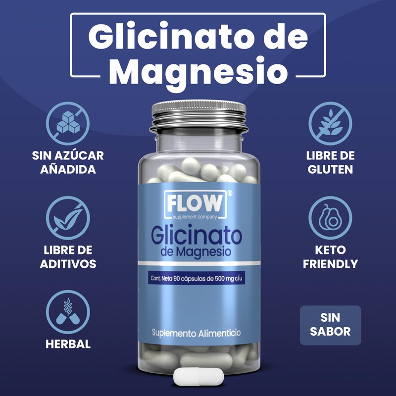 Glicinato de Magnesio - 90 Cápsulas para 3 Meses - Flow Supplements