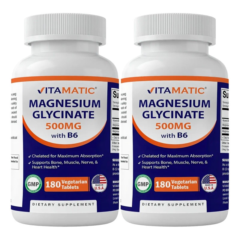 ⚡💊 Vitamatic Glicinato de Magnesio 500mg – 180 Tabletas