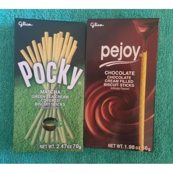 Glico Pejoy a Thailand Biscuit sticks filled in two (2) flavours, Rich chocolate and Matcha green tea cream.