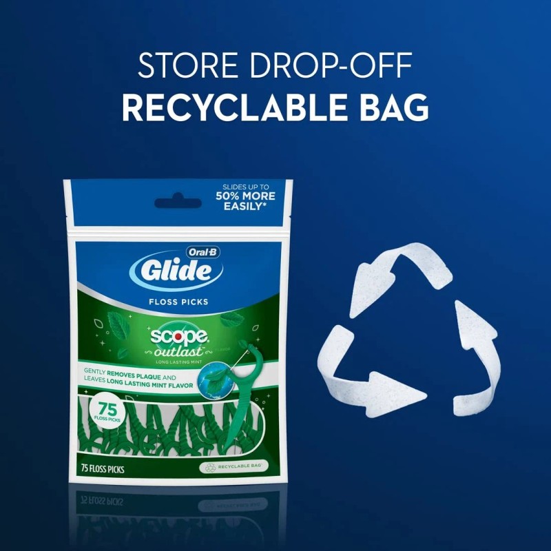 2. [Slide Up 50% More Easily:] With Glide's efficiency and combined freshness from scope outlast, it slides effortlessly into tight areas up to 50% easier than traditional floss picks.