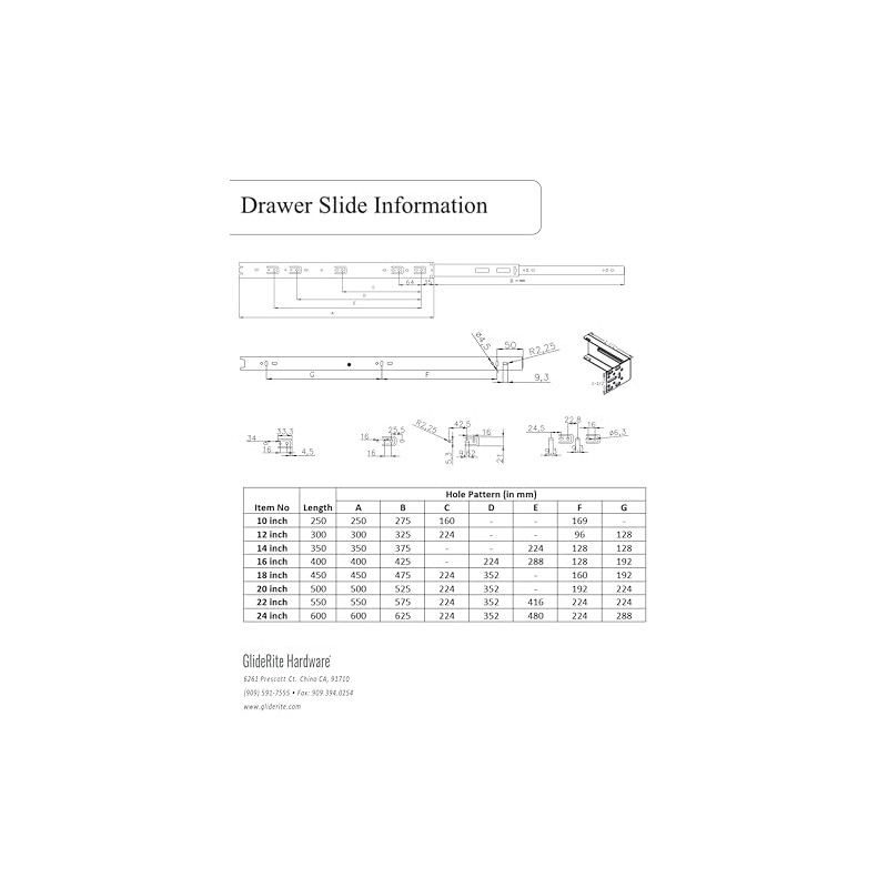 GlideRite 14 in. Full Extension Side Mount Ball Bearing 100-lb Load Capacity Heavy Duty Drawer Slide 1-Pair (2-Pieces)