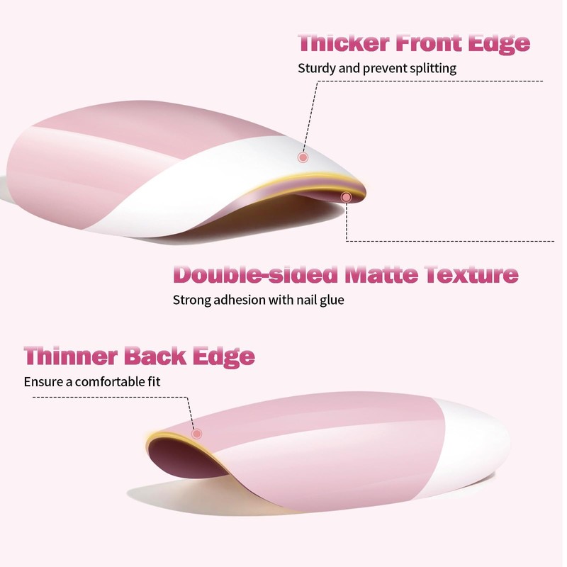 2.Diese Künstliche Nägel sind Klebe Nägel, die ohne Kleber direkt aufgetragen werden können. Gute für Fingernägel, die einen schnellen und eleganten French Nails Press On Look benötigen.
