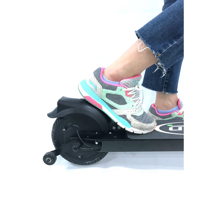 An easy to read handlebar-mounted battery indicator keeps track of battery life. It comes with a pedestrian bell. Scooter cover sold separately. The Glion Electric Scooter weighs only 28 pounds and with its patented vertical self-standing feature, retractable handle and roller wheels you can walk with it like a roller bag suitcase. With its 1 second foot activated folding mechanism, you can quickly fold the scooter and dolly it through public transit or into your office.