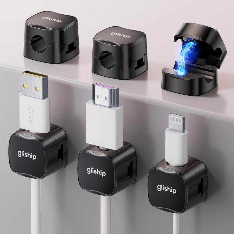 gliship [2025 Upgrade 6-Pack Magnetic Cable Clips - Cell Phone Cord Holder fo...